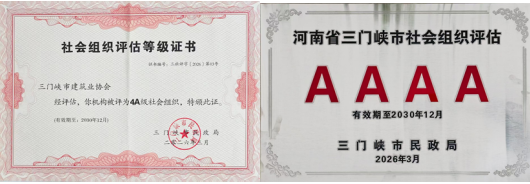 日前,三门峡市民政局发布“社会组织评估等级公告”,三门峡市建筑业协会再次获评4A级社会组织!